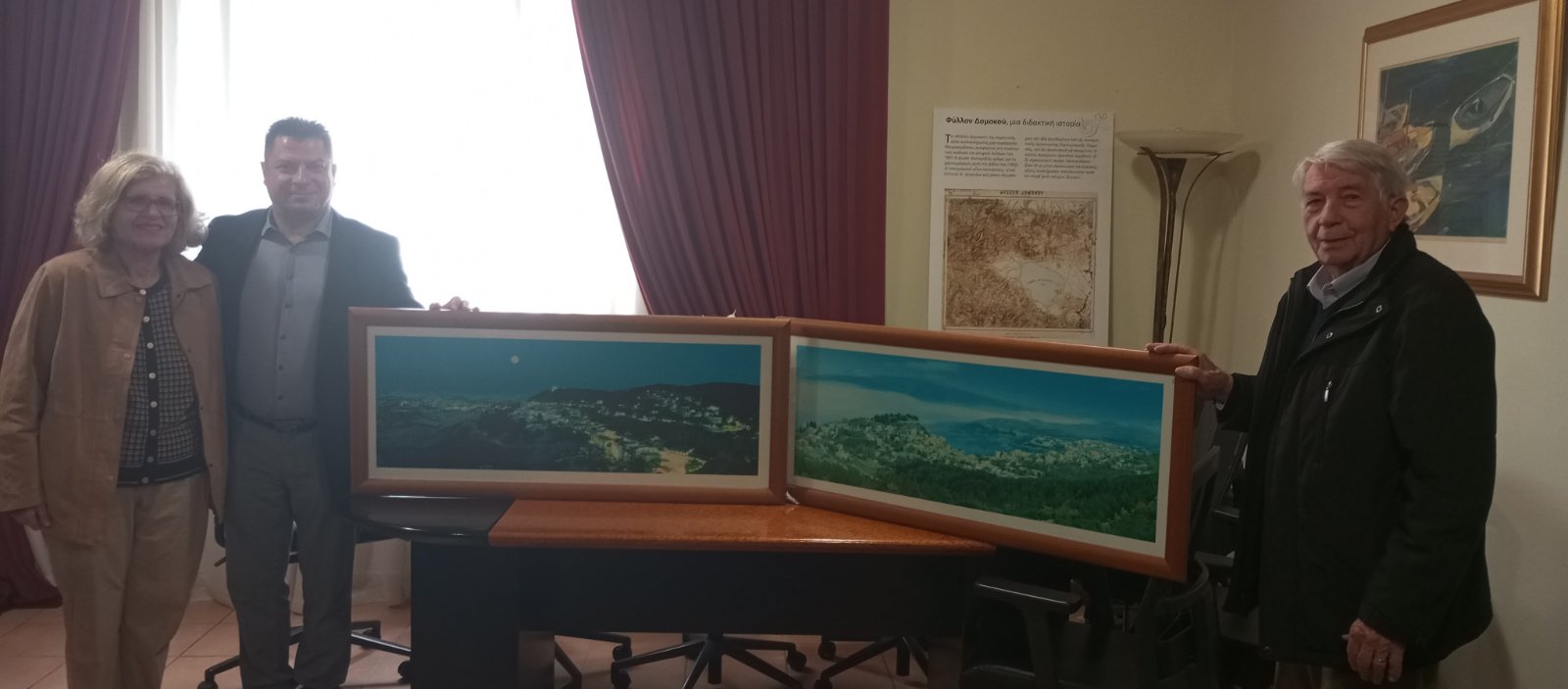 Σκοπός της συνάντησης ήταν η επίσημη παράδοση και δωρεά δύο εμβληματικών φωτογραφικών πινάκων, οι οποίοι αποτελούσαν μέρος της συλλογής του Υποθηκοφυλακείου καθ’ όλη τη διάρκεια της λειτουργίας του. Παρά το γεγονός ότι η υπηρεσία έχει παύσει τη λειτουργία της προ διετίας, η κα. Ξυδοπούλου μερίμνησε προσωπικά για τη διαφύλαξη των εν λόγω κειμηλίων, επιλέγοντας να τα δωρίσει στον Δήμο Δομοκού ώστε να παραμείνουν προσβάσιμα στην τοπική κοινωνία.