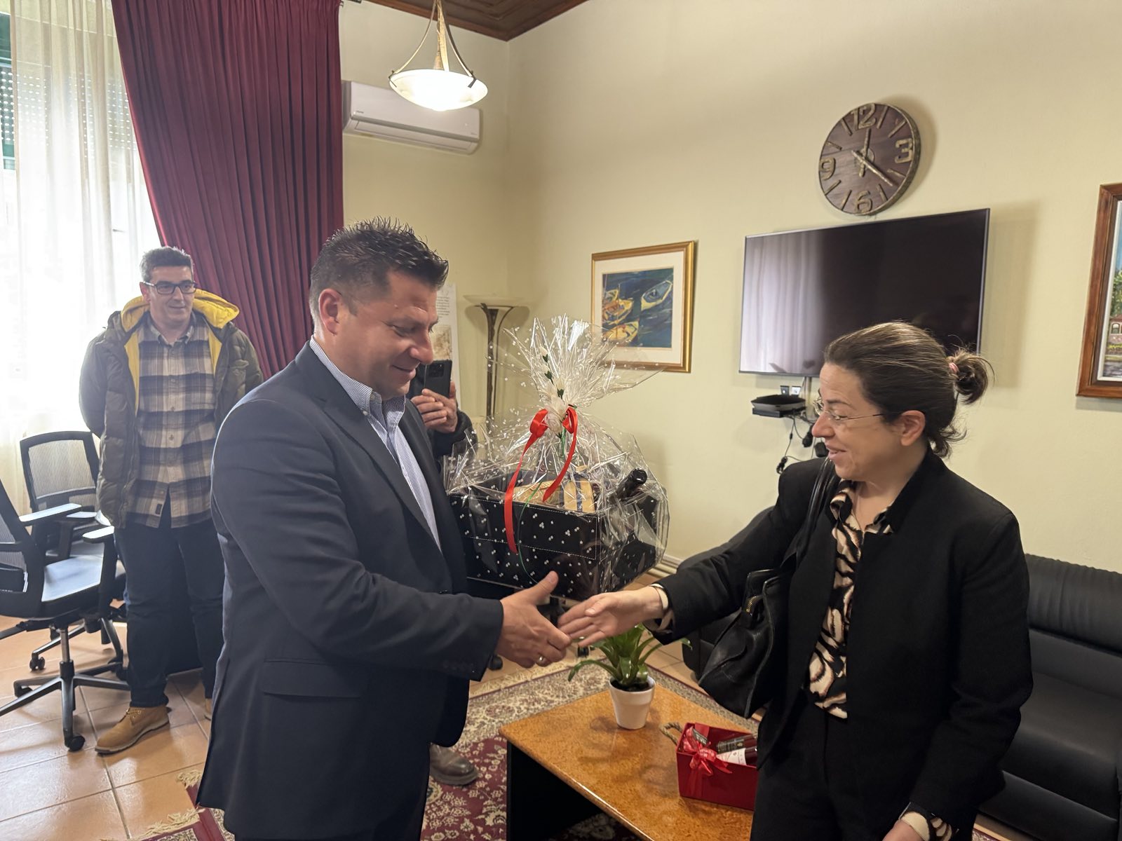 Η κ. Civelik επισκέφθηκε το Διοικητήριο, όπου πραγματοποίησε συνάντηση εργασίας με τον Δήμαρχο Δομοκού. Η συζήτηση εξελίχθηκε σε ιδιαίτερα φιλικό και εποικοδομητικό κλίμα, με τις δύο πλευρές να ανταλλάσσουν απόψεις για τον ρόλο και τις αρμοδιότητες των θεσμών που εκπροσωπούν, εστιάζοντας στην πολιτιστική κληρονομιά ως γέφυρα επικοινωνίας.